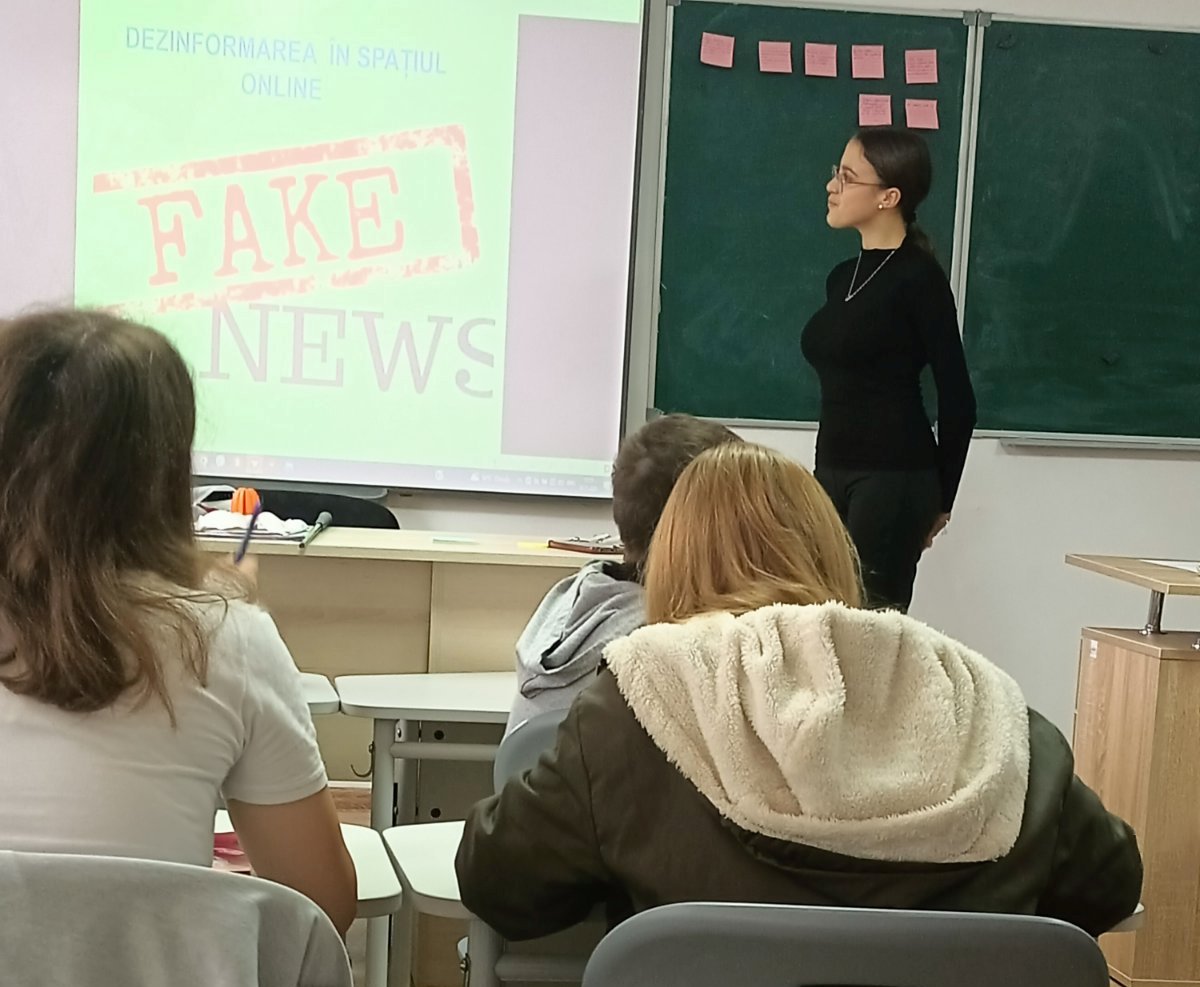Pe 10 noiembrie 2025, elevii din clasa a VIII-a ”A”(dirigintă Ludmila Dimitriu), au participat la un atelier practic și vital, organizat în parteneriat cu TI Moldova(Transparency International Moldova), pe tema dezinformării în mediul școlar. Am echipat elevii cu instrumentele necesare pentru a naviga responsabil în spațiul online. La acest atelier, elevii au exersat: identificarea și analiza critică a surselor, distincția clară între știri false și informație credibilă, adoptarea unui comportament online sigur și etic.